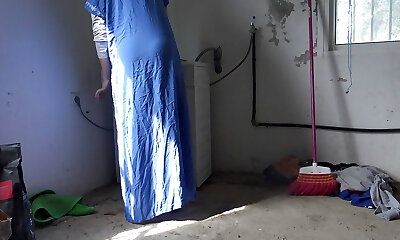Risky jerk off while watching big backside hijab stepmother in the kitchen.