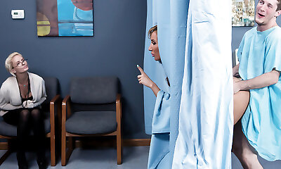 My physiotherapist performs therapy on my broken leg, seduces me and I tear up her so rigid that she makes her cum on her tits