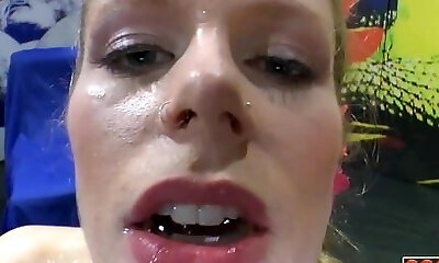 Young Blonde takes a double facial