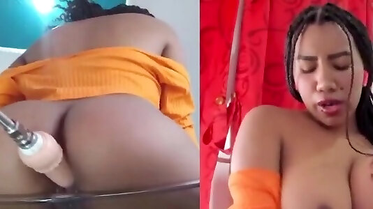 ebony marie luv se deja follar el coño engrasado por una máquina