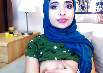 arbic donna dimostrare il suo capezzolo e giocando con puffies