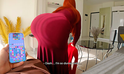 Red-hot MILF caught my boner and helped me cum on her big round ass