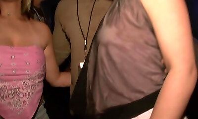 Girls fingering kissing group sex at public party
