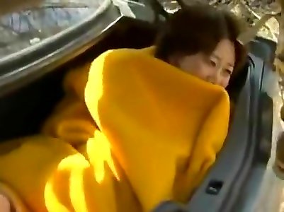 рыжеволосая японская красотка вдыхает, пока pov лица в машине