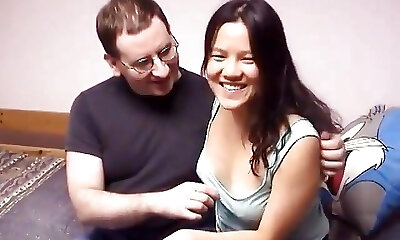 Relish this handsome creampie from the clean-shaven cunny of nasty Asian biotch Kana Matsu in her first-time threesome.