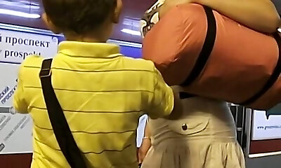 Amazing Ash-blonde in Bus (downblouse and upskirt no pantie)