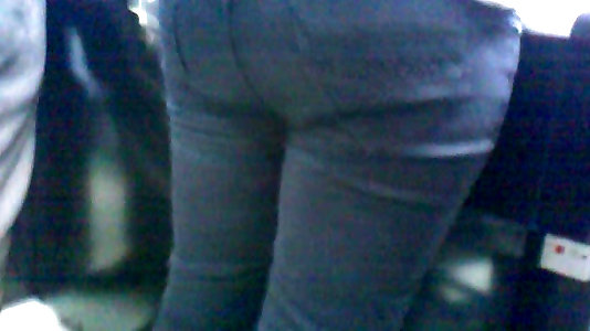 Super-fucking-hot backside stunner in cock-squeezing jeans on the bus in candid street flick