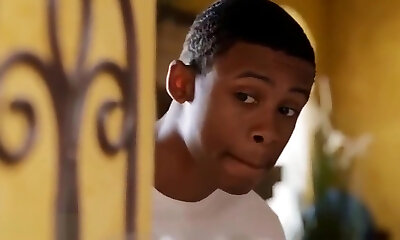 Not to be caught by husband black MILF is torn up by stepson in the bathroom
