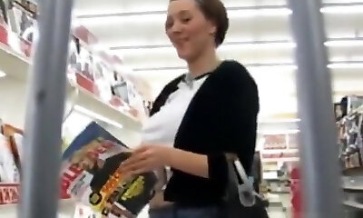 Shopping journey with my marvelous chubby wife Linda flashing her uprskirt