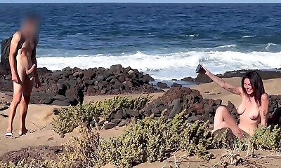 Naturist BEACH BLOWJOB: I show my hard cock to a tramp that asks me for a blowjob and cum in her mouth.