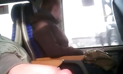 Fatty unexperienced on bus pretends not to see my cock