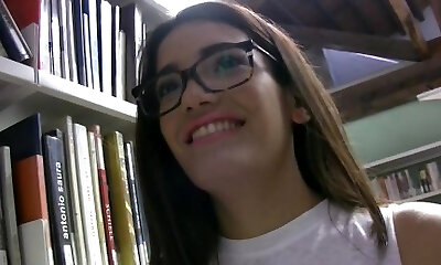 Nerdy babe with smallish tits loves atm cumshot on her glasses