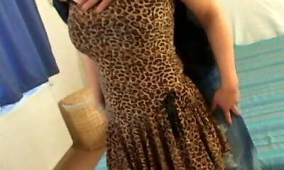 Whorish old housewife Viola Jones is blowing a dick of one young guy
