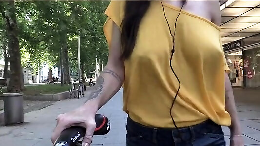 giovane euro babe lampeggiante tette allaperto nello spazio pubblico -