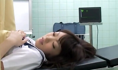 Loud oriental schoolgirl getting fingered by her medic on the medical bed