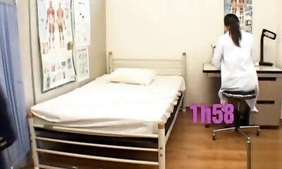 The voyeur medical exam of Asian snatch with dick and thumbs