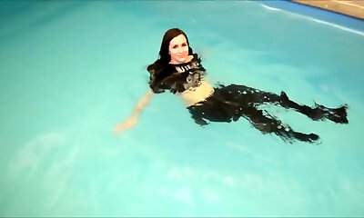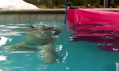 Rachel Starr romping the fellow in the pool like a superhero